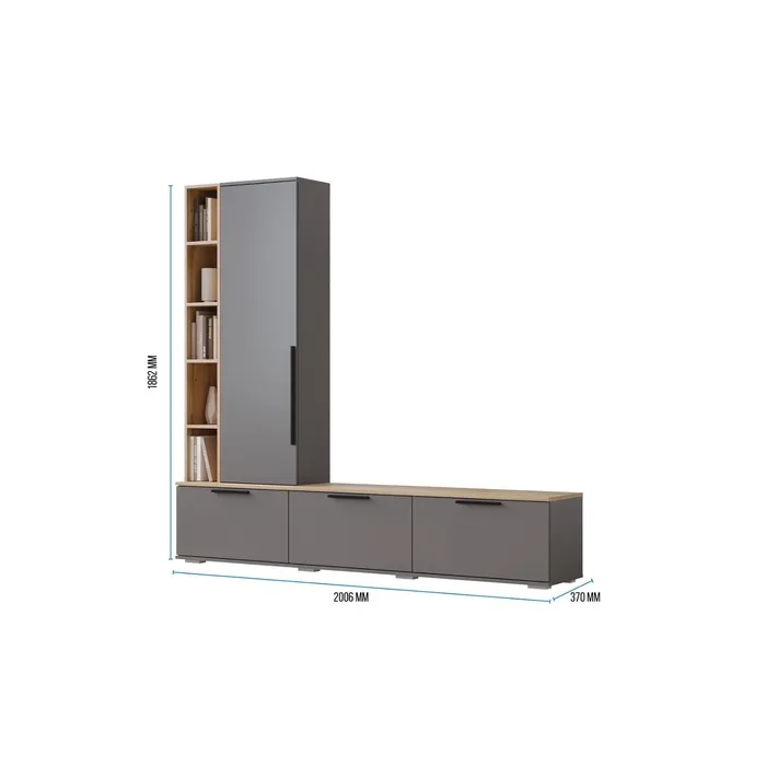 Стильное и функциональное решение для вашего дома. Размеры 2006x370x1862 мм делают её идеальной для помещений различного размера, комбинация графита и дуба вотан придает изделию элегантный и сбалансированный вид.