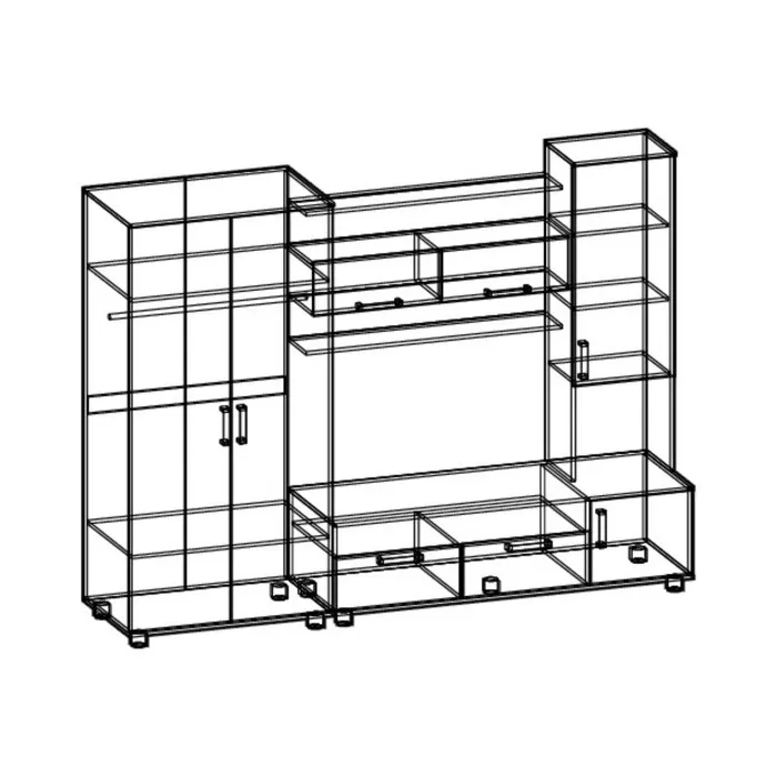 Гостиная София-3 представляет собой модульную систему, которая позволит создать уютную и стильную гостиную комнату. Гостиная София-3 изготовлена из ламинированной древесно-стружечной плиты (ЛДСП). Мебель имеет ширину 2200 мм, глубину 500 мм и высоту 2000 мм. Размер ниши для телевизора составляет 684 х 1000 мм.