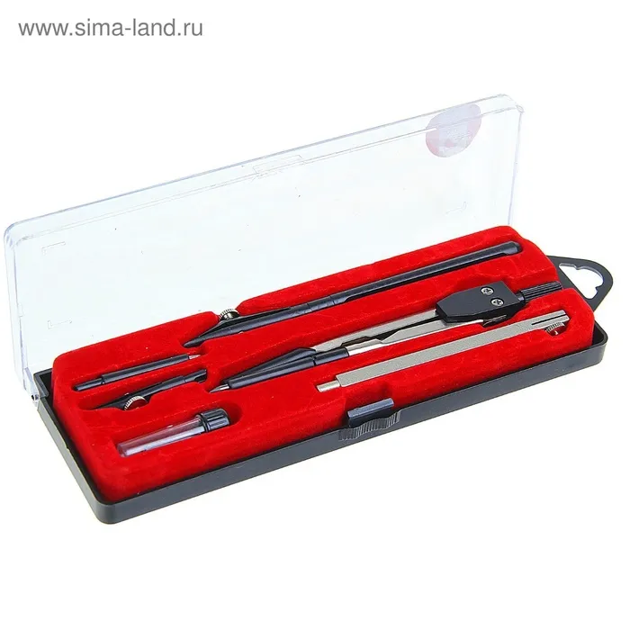 Готовальня Calligrata 6 предметов: циркуль, 2 удлинителя, грифель, 2 рейсфедера, центрик, в пластиковом пенале — Характеристики