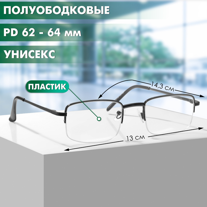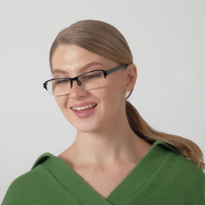 - Удобство ношения: полуободковый тип оправы уменьшает массу и снижает давление на переносицу, позволяя долго находиться в очках без утомления.