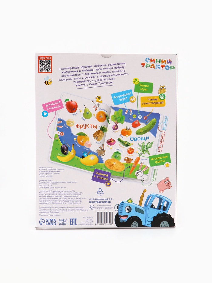 Познакомьтесь с дружелюбным Синим трактором — он не только расскажет о мире, но и заговорит сам! Нажимая на картинки, малыш слышит голос героя, узнаёт названия предметов, звуки техники, животных и транспорта. Каждая страница — это мини-урок, упакованный в игру: понятный, тёплый и полный открытий.