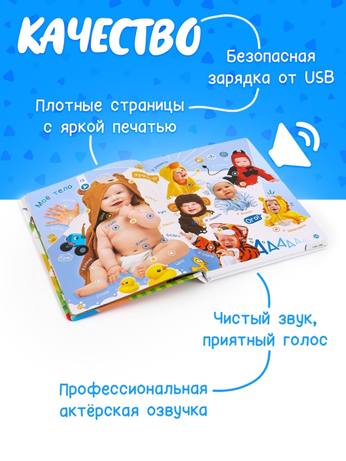 - Поддерживает самостоятельность. Малыш может листать и слушать без помощи взрослого, чувствуя себя увереннее с каждой страницей.