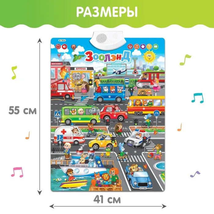 Говорящий электронный плакат «Зоолэнд», работает от батареек — Характеристики