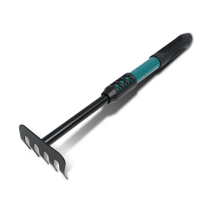 Грабли Greengo — многофункциональный помощник для сада и дачи. Такой инструмент отлично подойдёт для рыхления почвы — необходимого для правильного роста и развития растений процесса. Также с помощью данной модели удобно убирать сорняки и прочий органический мусор. Приспособление без труда разбивает большие комки и извлекает оставшиеся корни. Для вашего удобства рукоять изделия прорезинена.