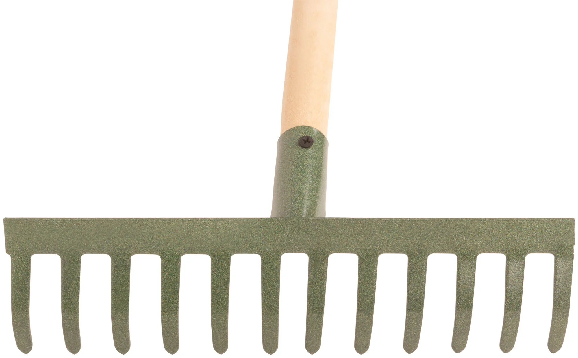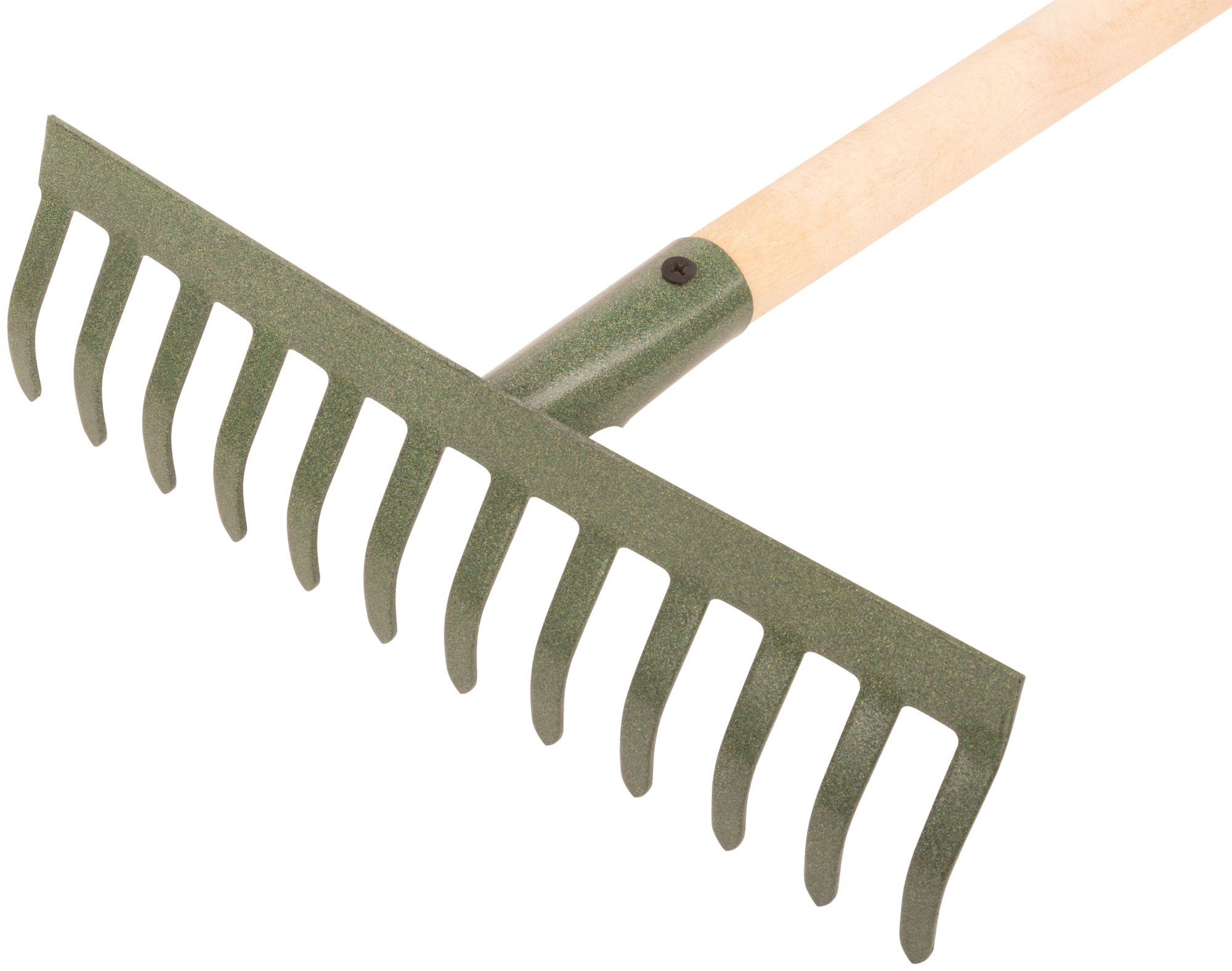 Грабли с 12 прямыми зубьями и деревянным черенком для садовых работ