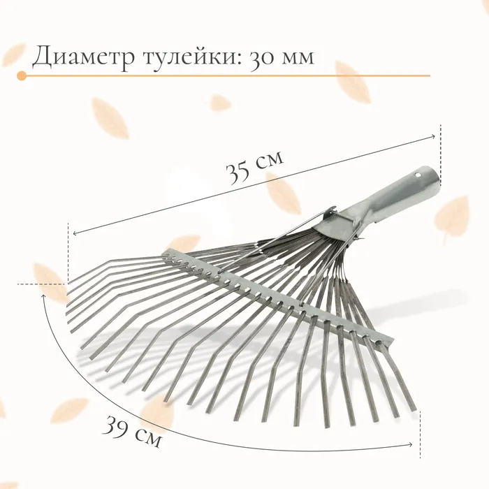 Грабли веерные, пластинчатые, 22 зубца, оцинкованная сталь, тулейка 30 мм, без черенка — Характеристики