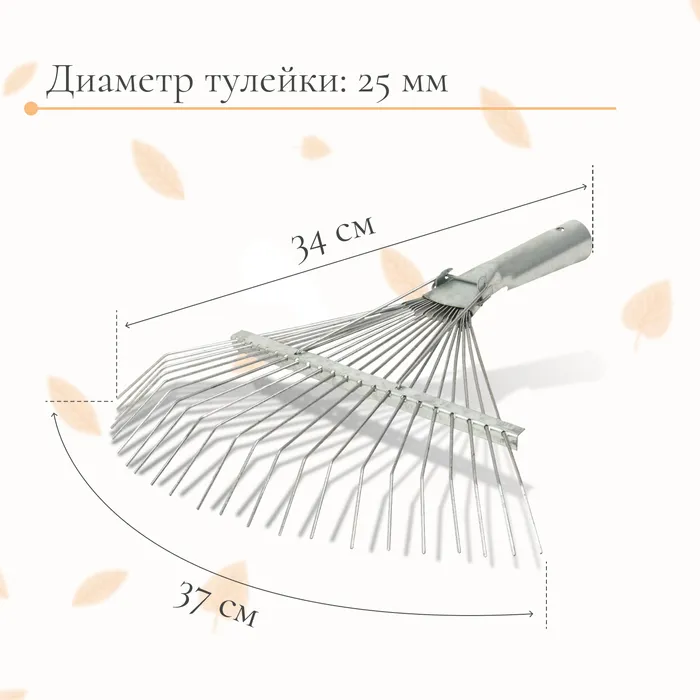 Грабли веерные, проволочные, 22 зубца, оцинкованные, тулейка 25 мм, без черенка — Характеристики