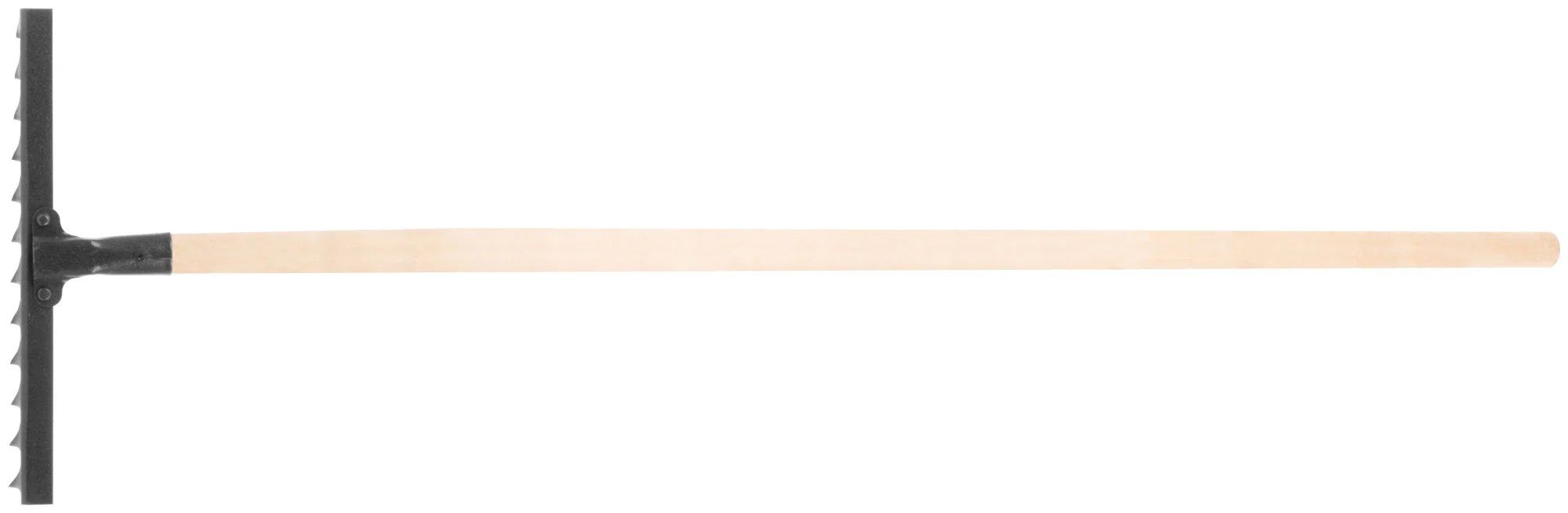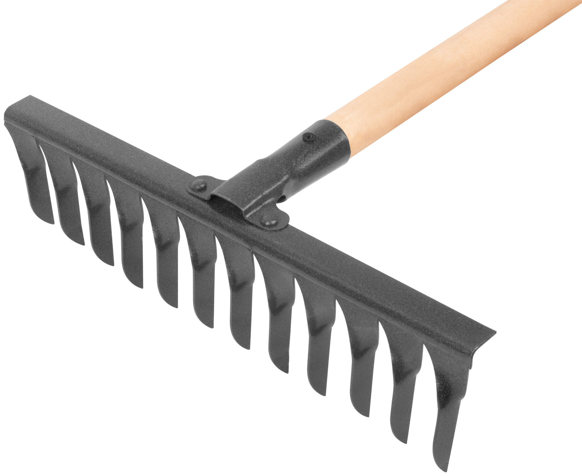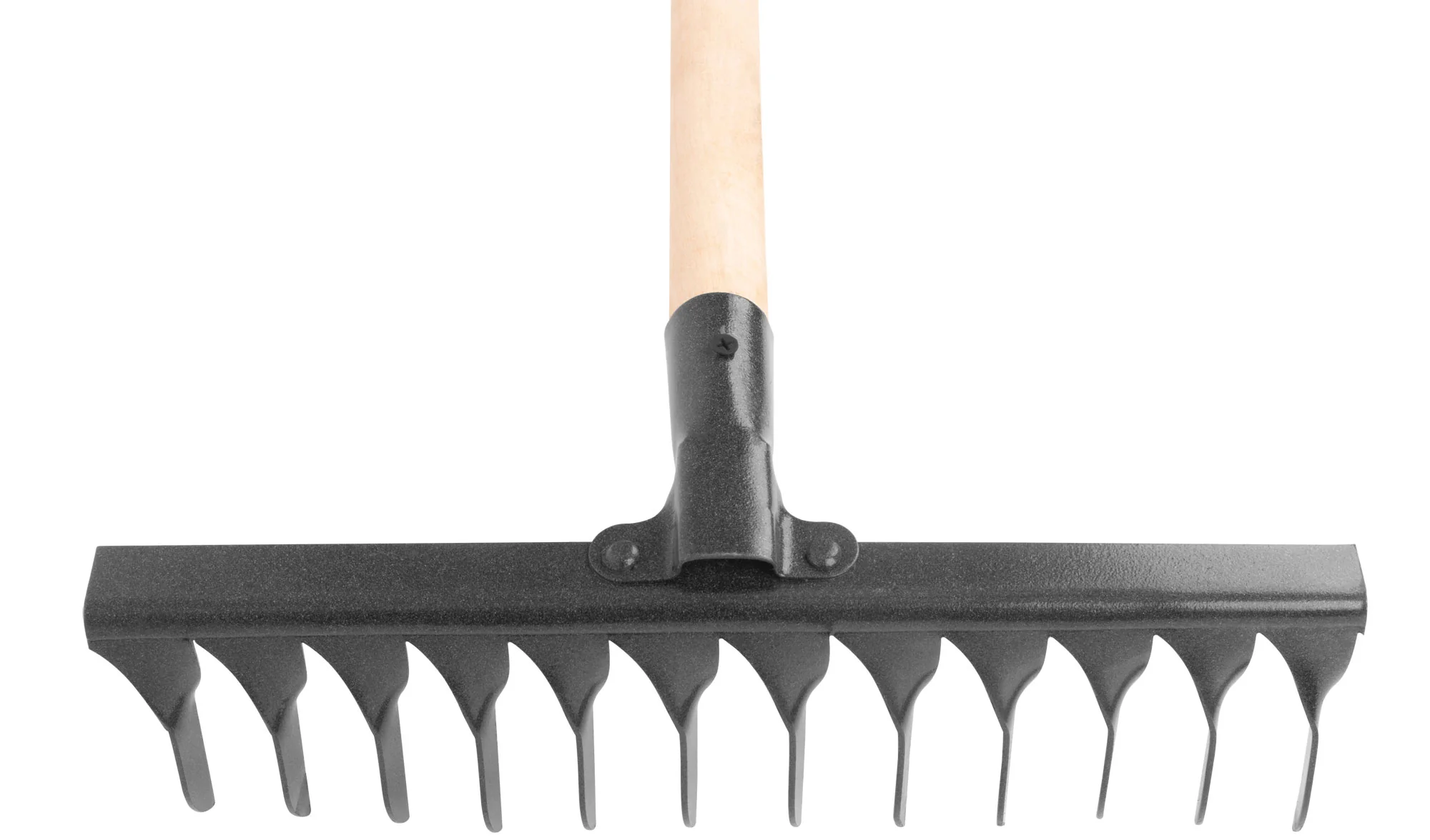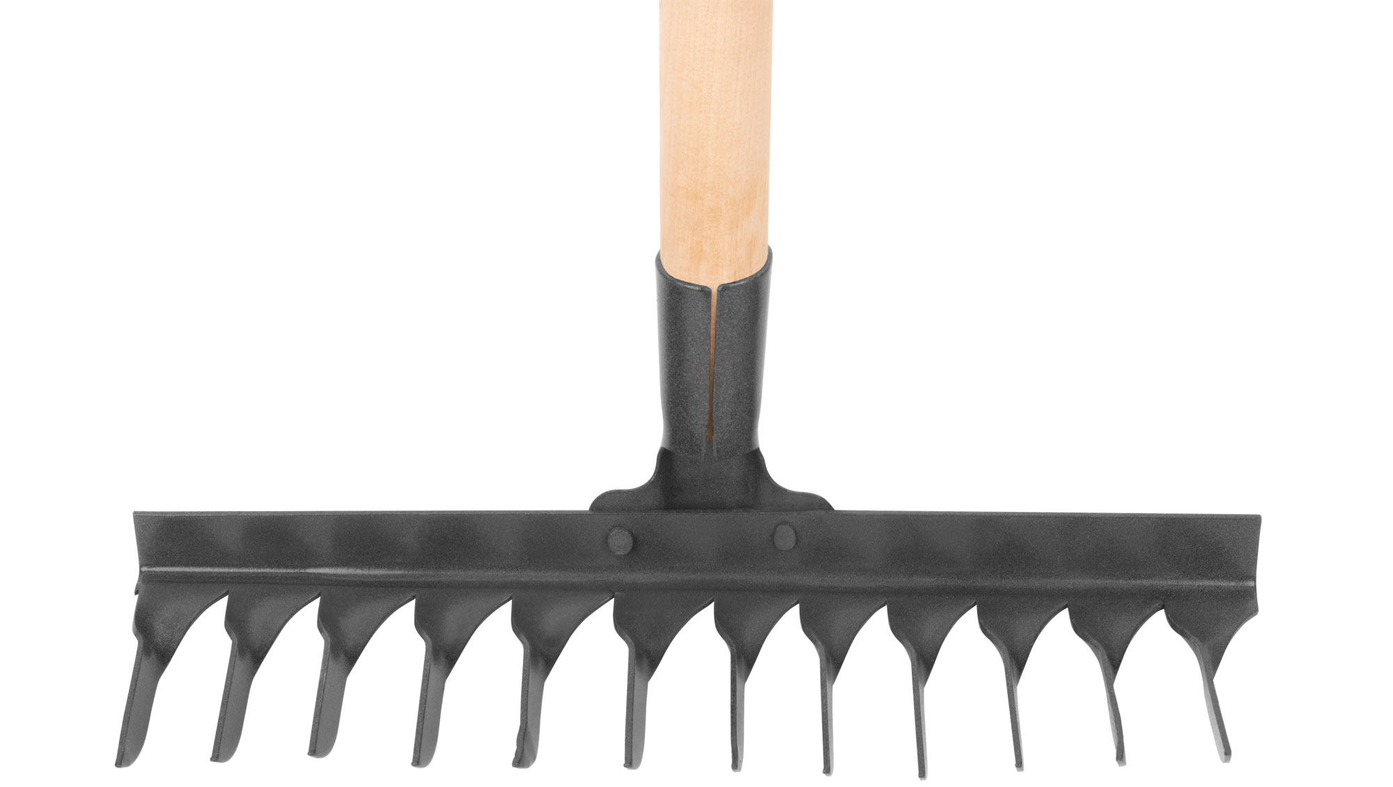Грабли изготовлены из инструментальной стали, что обеспечивает долгий срок службы и стойкость к коррозии. Деревянный черенок удобен в использовании, не скользит в руках и позволяет комфортно работать продолжительное время.
