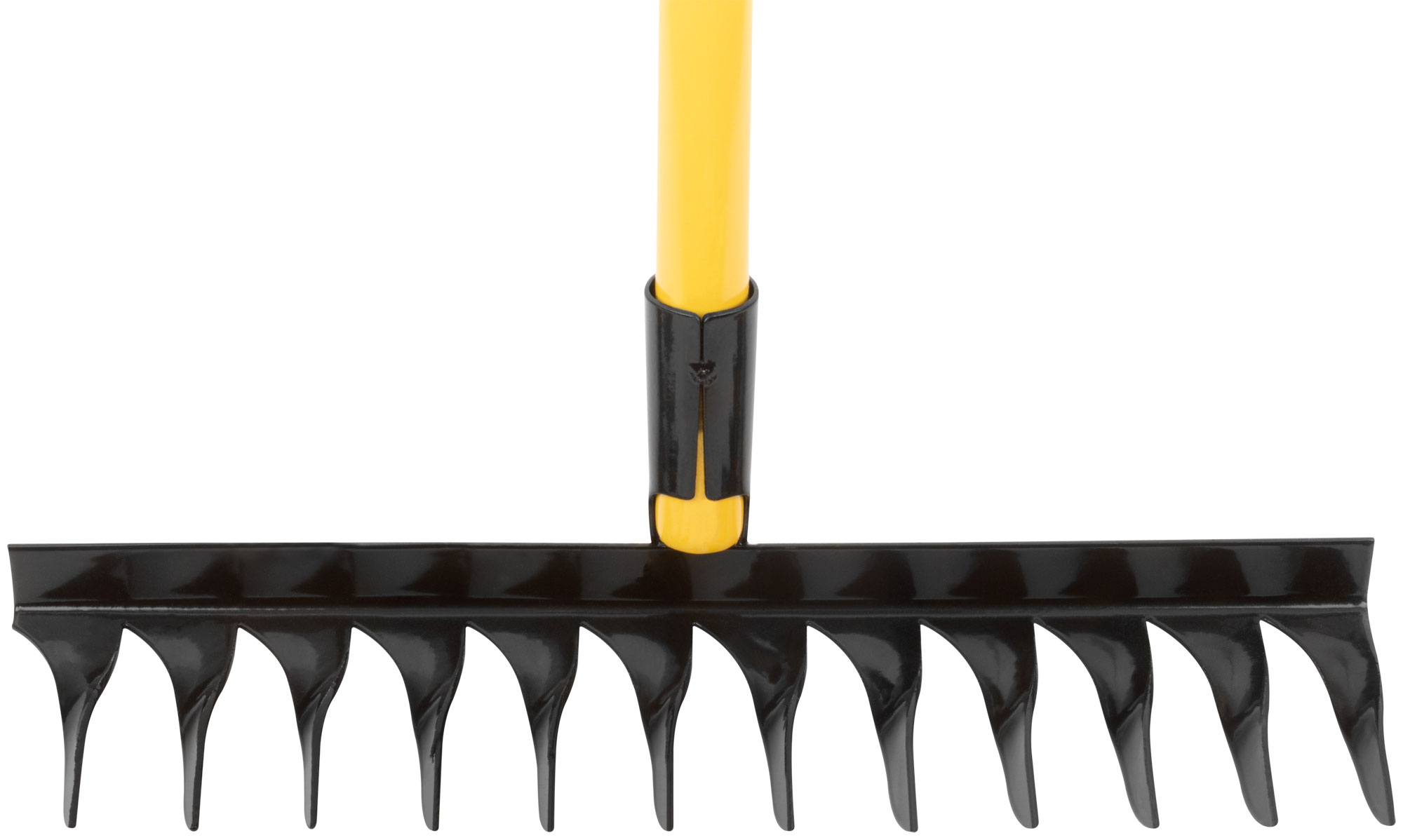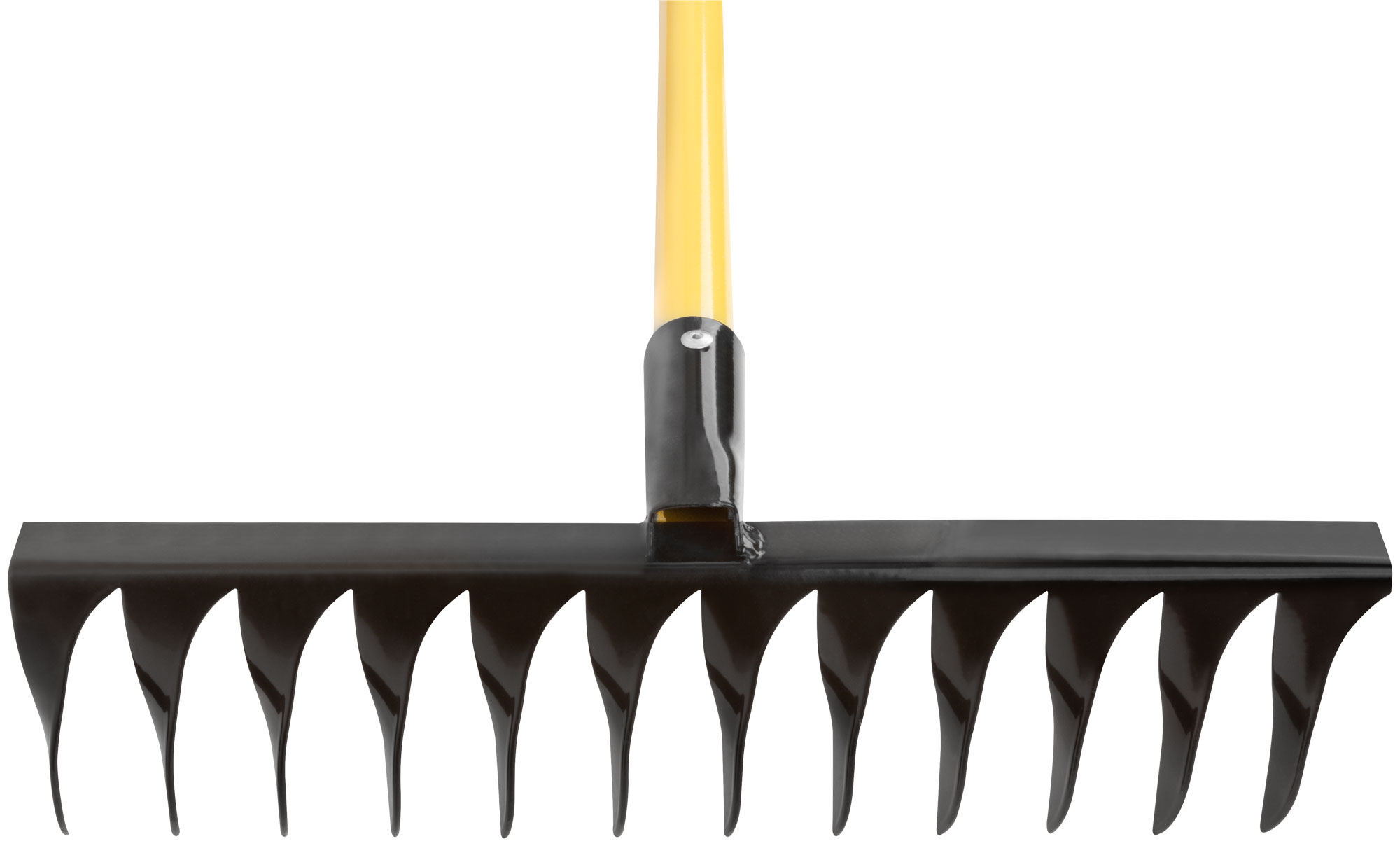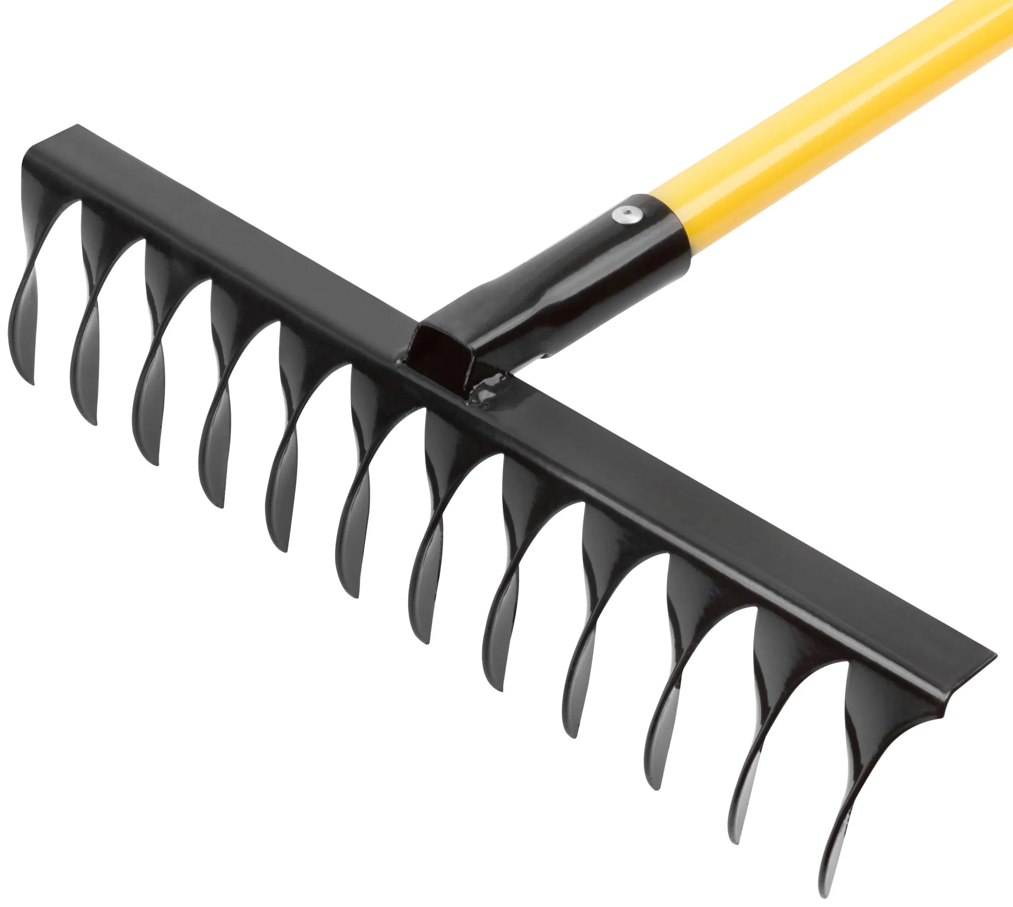 Грабли оснащены 12 витыми зубьями, выполненными из углеродистой стали СТ3, что обеспечивает их долговечность и надежность при работе с различными типами почвы. Желтый металлизированный черенок не только добавляет эстетичности, но и укрепляет конструкцию, делая инструмент удобным в использовании.