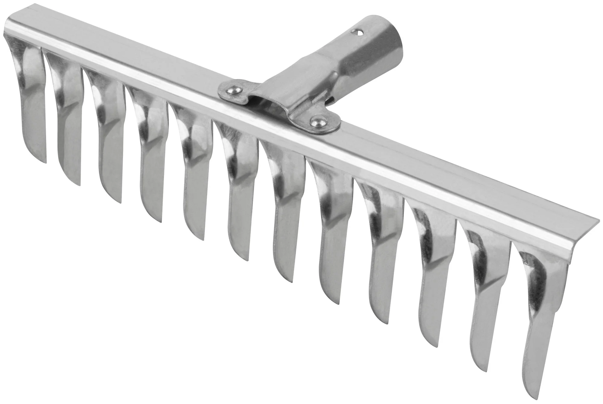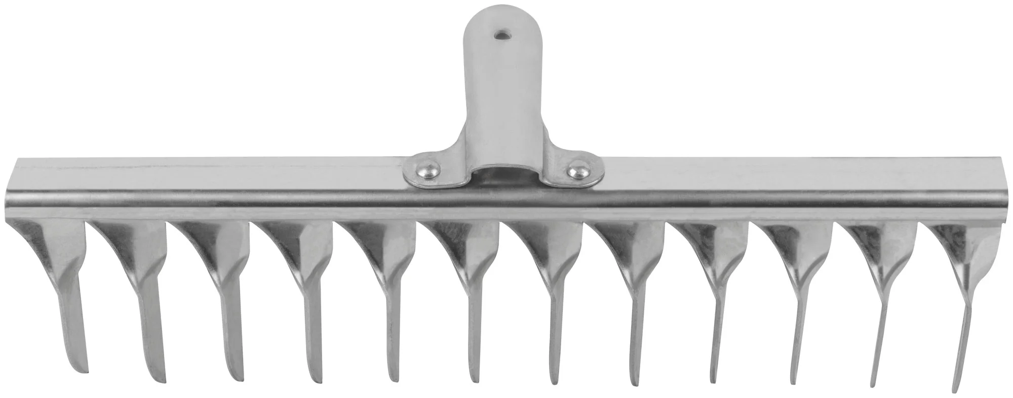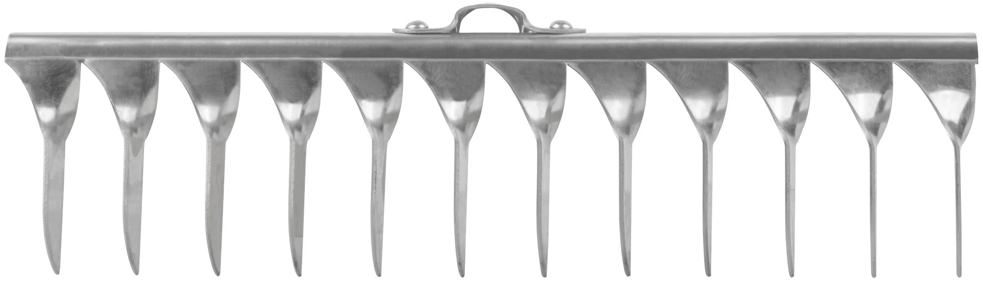 Грабли выполнены из прочной нержавеющей стали, что гарантирует долговечность и устойчивость к коррозии. 12 витых зубьев обеспечивают надежный захват и аккуратную работу с почвой. Несмотря на отсутствие черенка, они легко крепятся к стандартным ручкам для удобства использования.