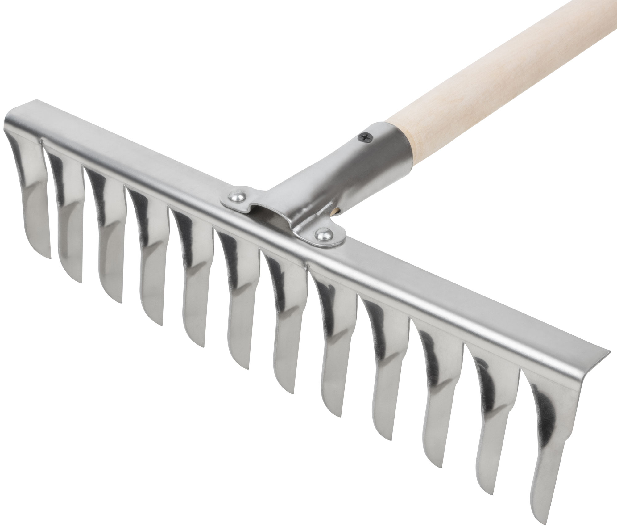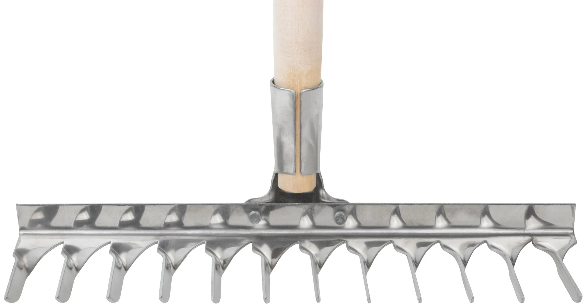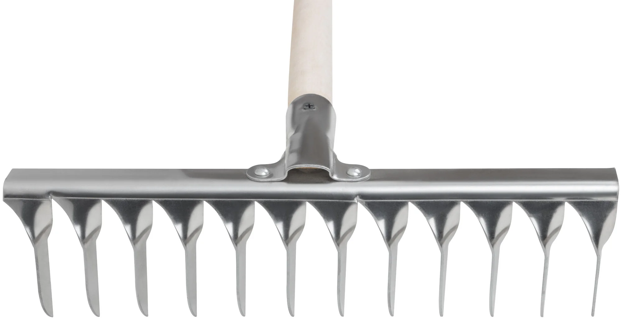 Грабли 12 зубьев из нержавеющей стали с деревянным черенком для надежной работы