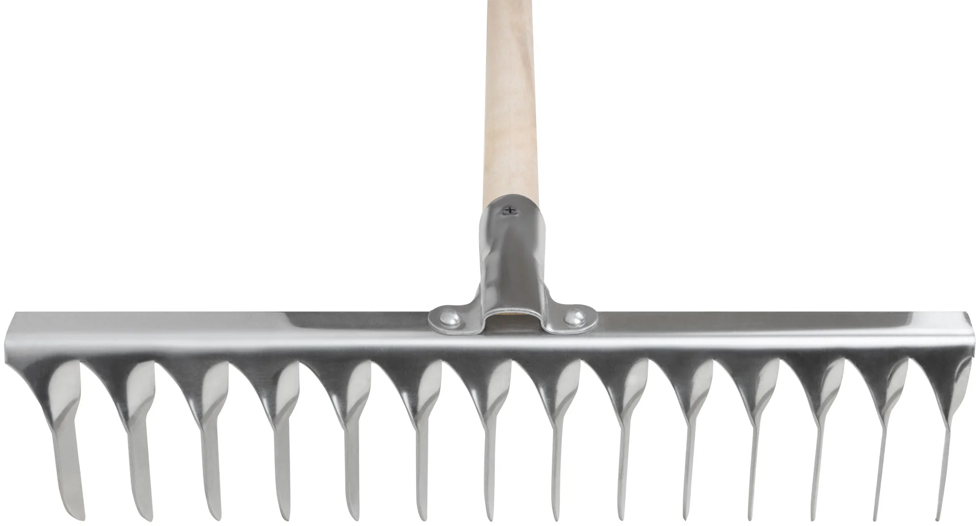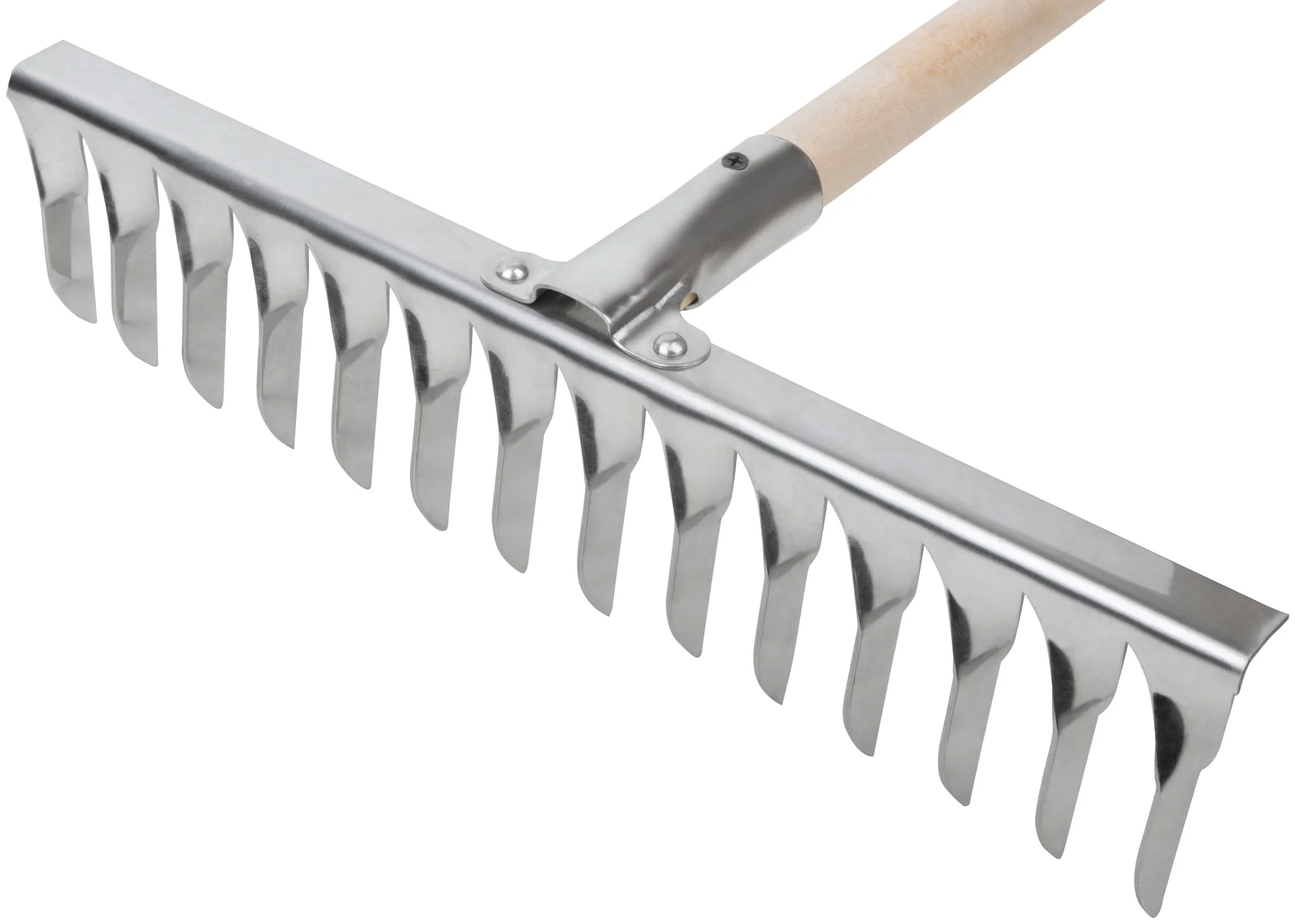 Эти грабли от бренда FIT с 14 зубьями из нержавеющей стали идеально подходят для уборки листьев, мусора и подготовки почвы на садовом участке. Благодаря прочному деревянному черенку, они обеспечивают комфорт и надежность в работе.