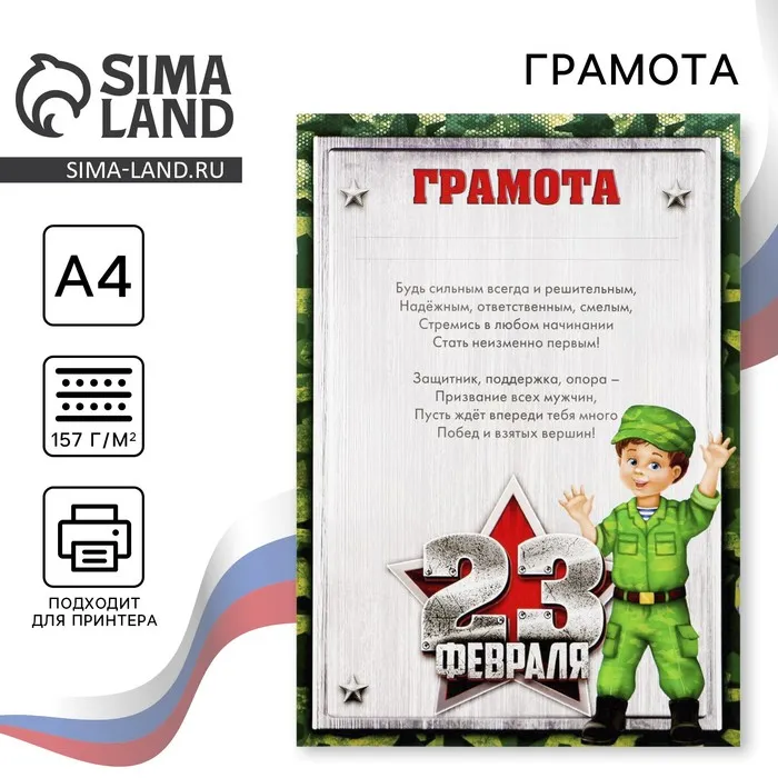 Грамота А4 «23 февраля», 157 гр/кв.м — Характеристики