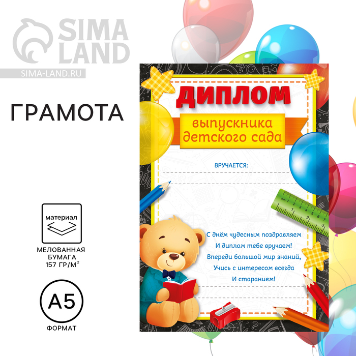 Грамота на Выпускной «Выпускника детского сада», А5, 157 гр/кв.м — Характеристики