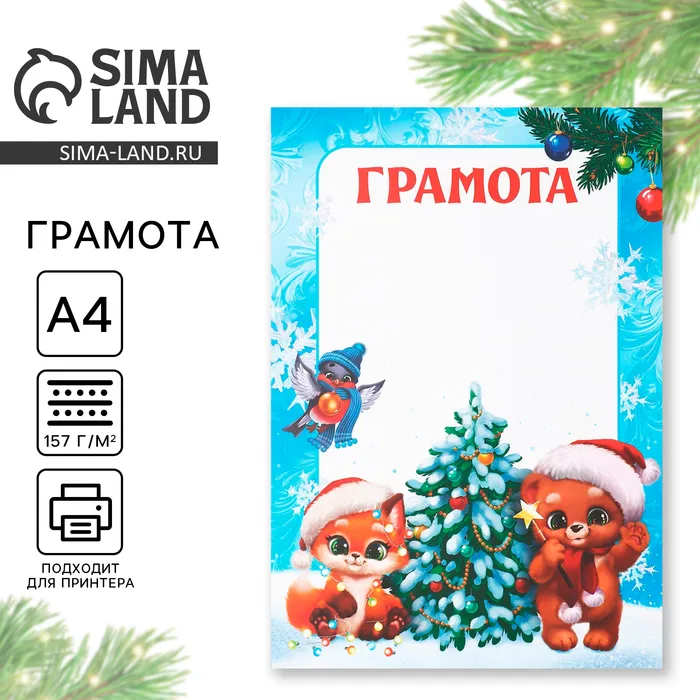Новогодняя грамота формата А4 (21 х 29,7 см.), изготовлена из мелованной бумаги плотностью 157 гр. Оригинальный дизайн этой ограниченной серии непременно порадует получателя. Индивидуальное поздравление на ней можно напечатать на принтере или написать тёплые слова от руки. Грамота подойдет для любых корпоративных мероприятий и образовательных учреждений. Это яркий и красочный, но в то же время простой способ сделать приятно любому человеку.