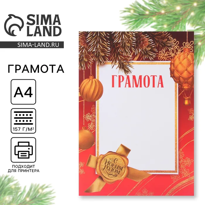 Новогодняя грамота формата А4 (21 х 29,7 см.), изготовлена из мелованной бумаги плотностью 157 гр. Оригинальный дизайн этой ограниченной серии непременно порадует получателя. Индивидуальное поздравление на ней можно напечатать на принтере или написать тёплые слова от руки. Грамота подойдет для любых корпоративных мероприятий и образовательных учреждений. Это яркий и красочный, но в то же время простой способ сделать приятно любому человеку.