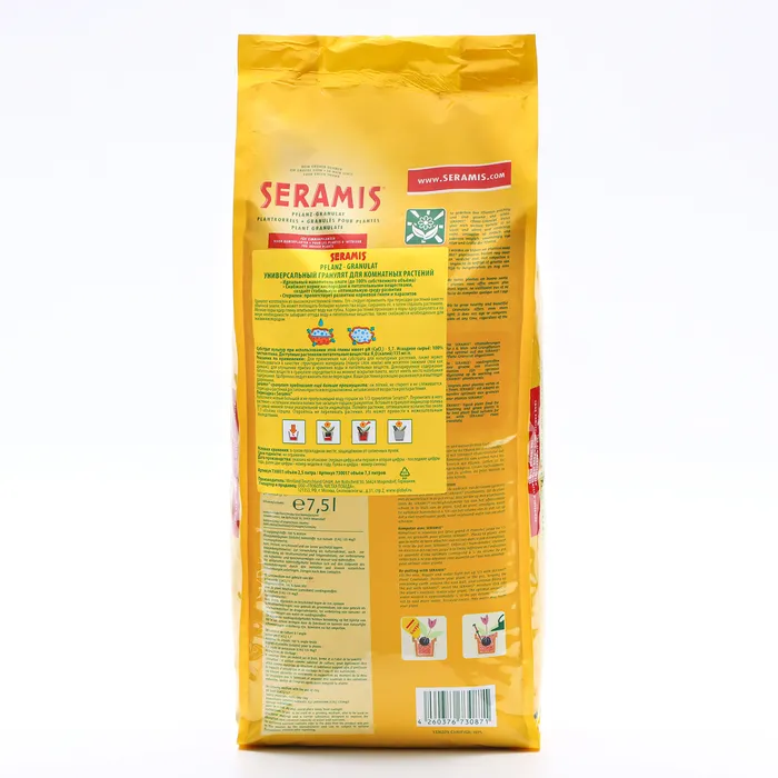 Особенности: растения роскошно развиваются и выглядят здоровыми. Seramis - гранулят предлагает ещё больше преимуществ: он лёгкий, не стареет и не слёживается, предотвращает грибного комарика. Пересадка растений достаточно простая и всегда возможна, независимо от возраста и роста растения.