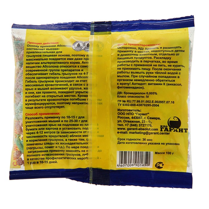 особая технология изготовления позволяет полностью пропитать гранулы АДВ, поэтому грызуны гарантированно получат летальную дозу;