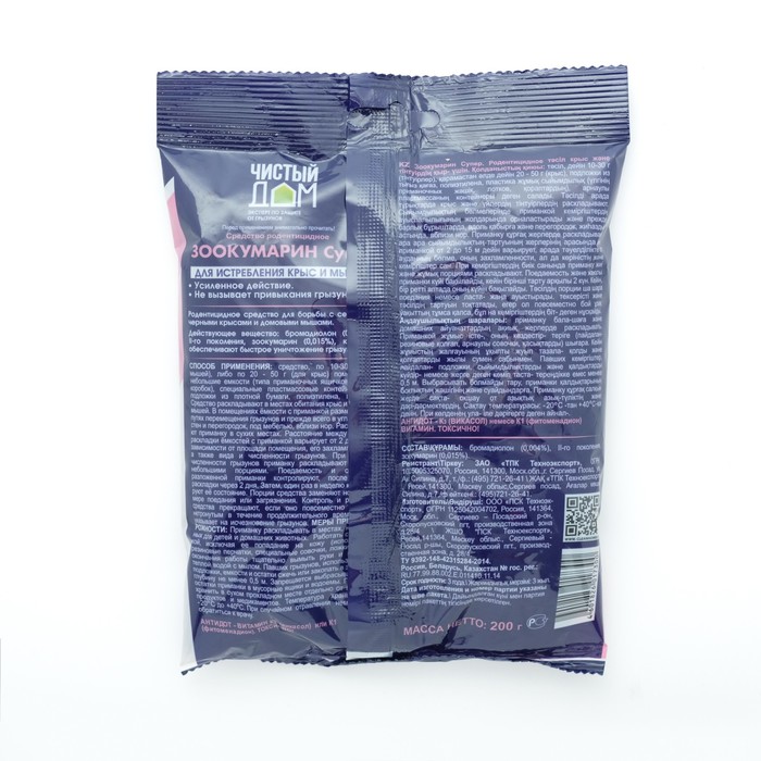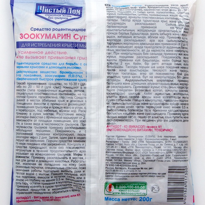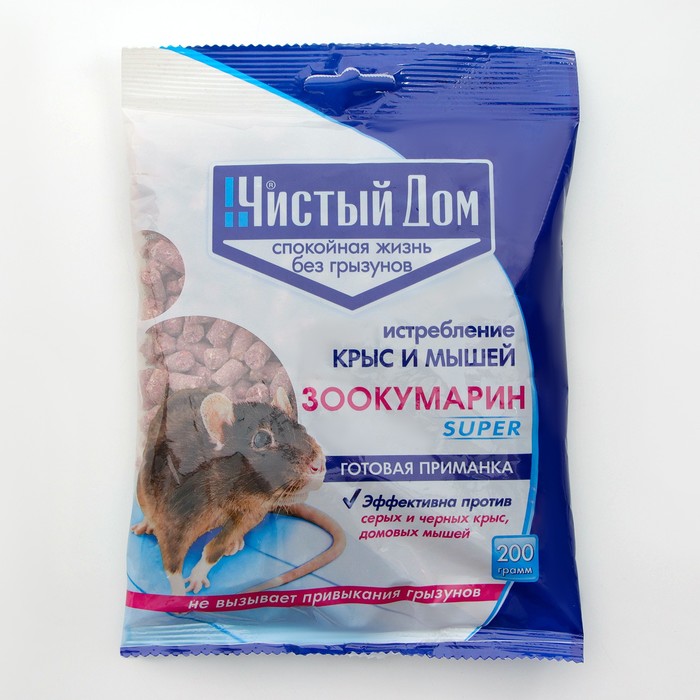 Гранулы от крыс и мышей «Зоокумарин супер», 200 г, «Чистый дом» — Характеристики