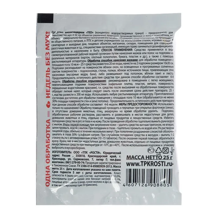 Гранулы от мух "Злобный TED", с феромоном, пакет, 25 г — Характеристики