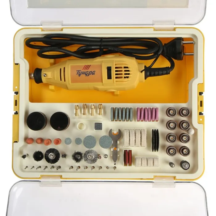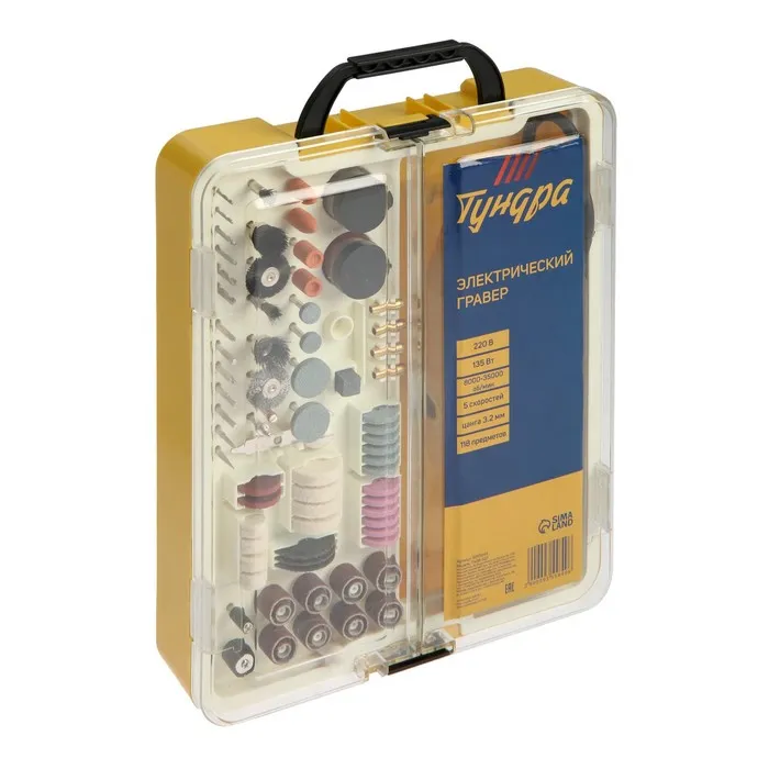 Гравер электрический ТУНДРА, 135 Вт, 8000-35000 об/мин, цанга 3.2 мм, 5 ск., 118 предметов — Характеристики