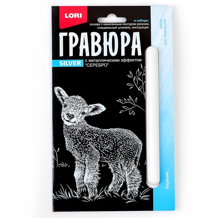 Гравюра 10 × 15 см, Детёныши «Барашек» (серебро) — Характеристики