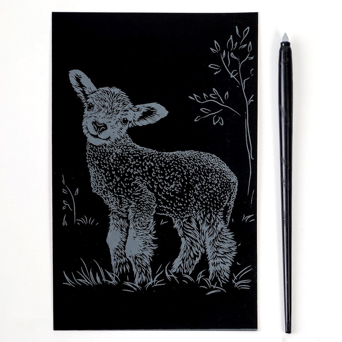 Гравюра 10 × 15 см, Детёныши «Барашек» (серебро)