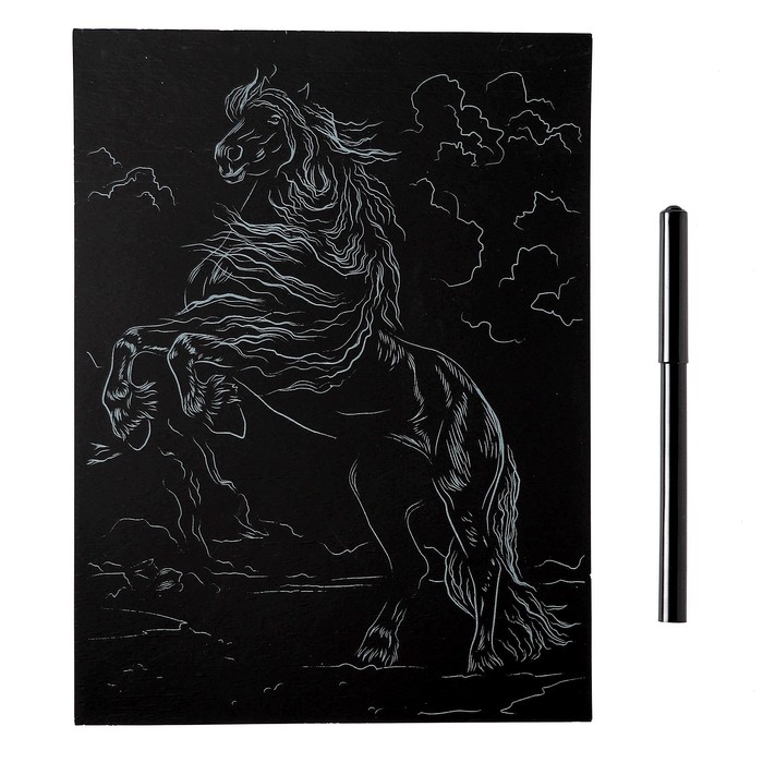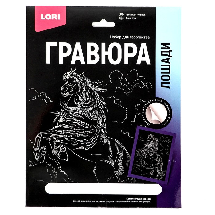 Гравюра 18 × 24 см, Лошади «Фризская лошадь» (серебро) — Характеристики