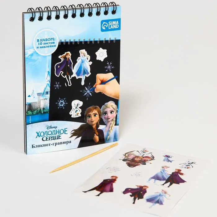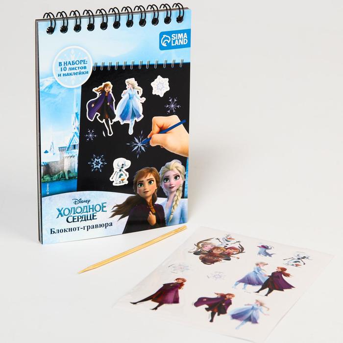 Гравюра блокнот детский «Холодное сердце», 10 листов, наклейки — Характеристики