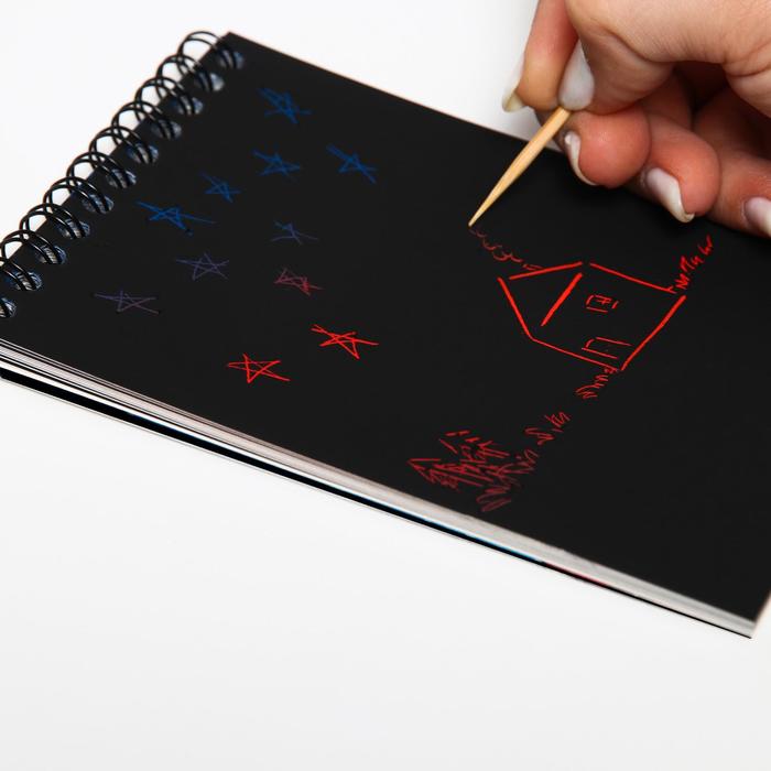 Блокнот-гравюра состоит из 10 волшебных страниц с разноцветным покрытием, которое спряталось под черными листами! С помощью рисования штихелем ваш рисунок станет волшебным. В комплекте подарок ребенку - наклейки с любимыми героями!