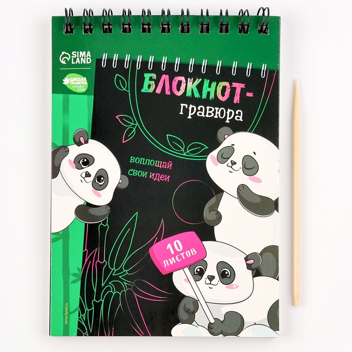 Гравюра блокнот детский «Пандамания», 10 листов, штихель — Характеристики