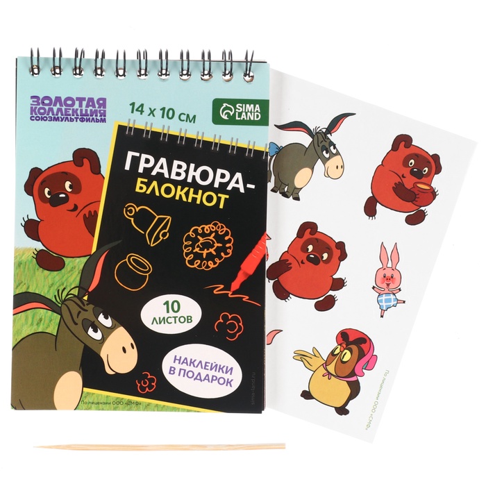 Гравюра блокнот детский «Винни-Пух», 10 листов, лист наклеек, А6 — Характеристики