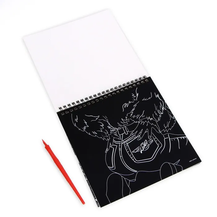 - 5 листов, покрытых чёрным слоем, на который нанесён контур рисунка. Процарапайте его с помощью штихеля, и сквозь контуры проступит сияющий золотой слой.