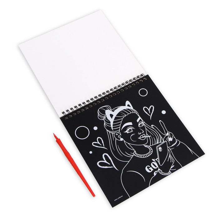 Гравюра блокнот - раскраска детская «Модница», 19 х 19 см, для девочки — Характеристики