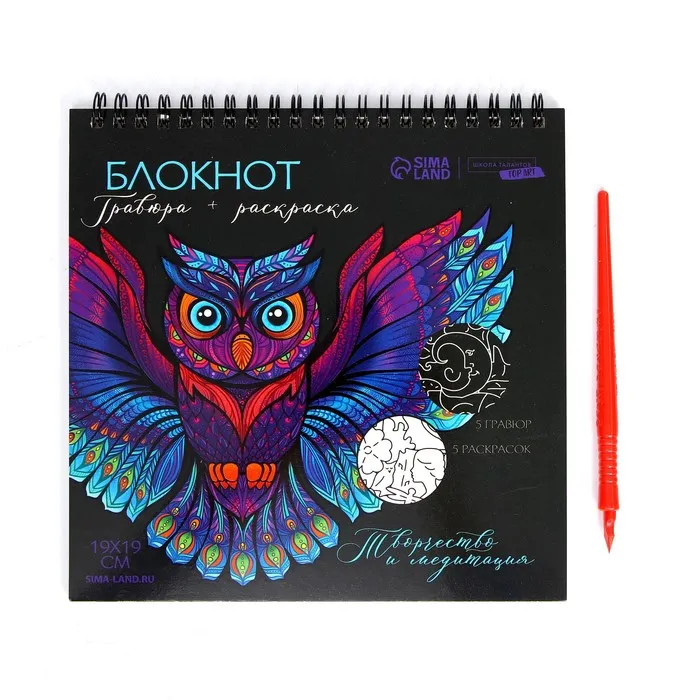 Любимые виды творчества в одном блокноте! Гравюры и раскраски — это настоящее искусство и медитация для взрослых и подростков.