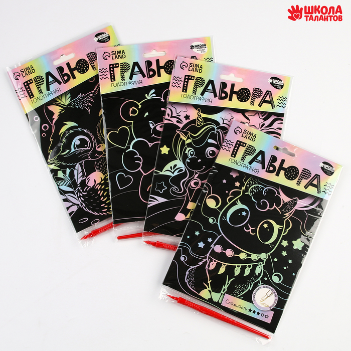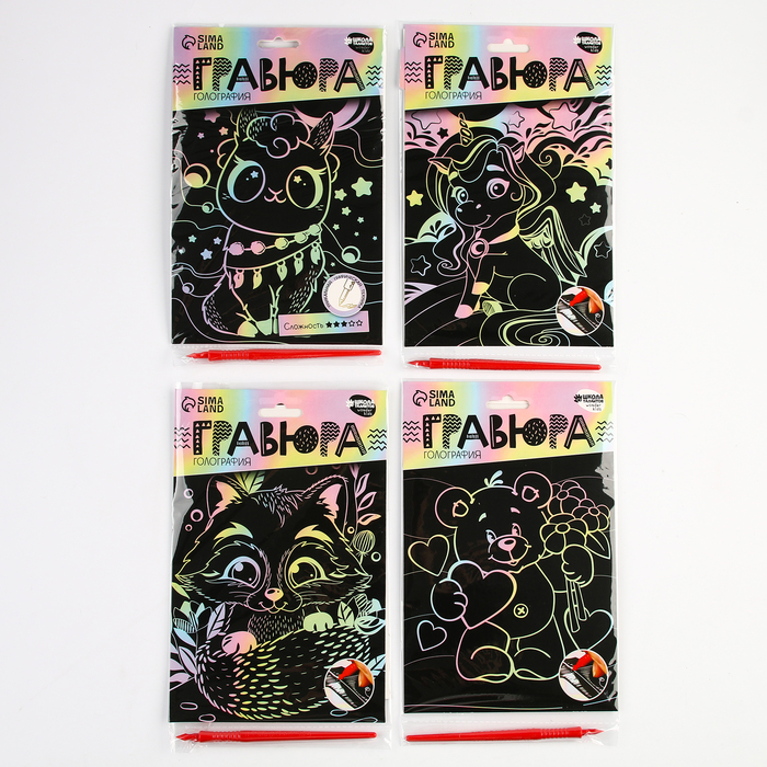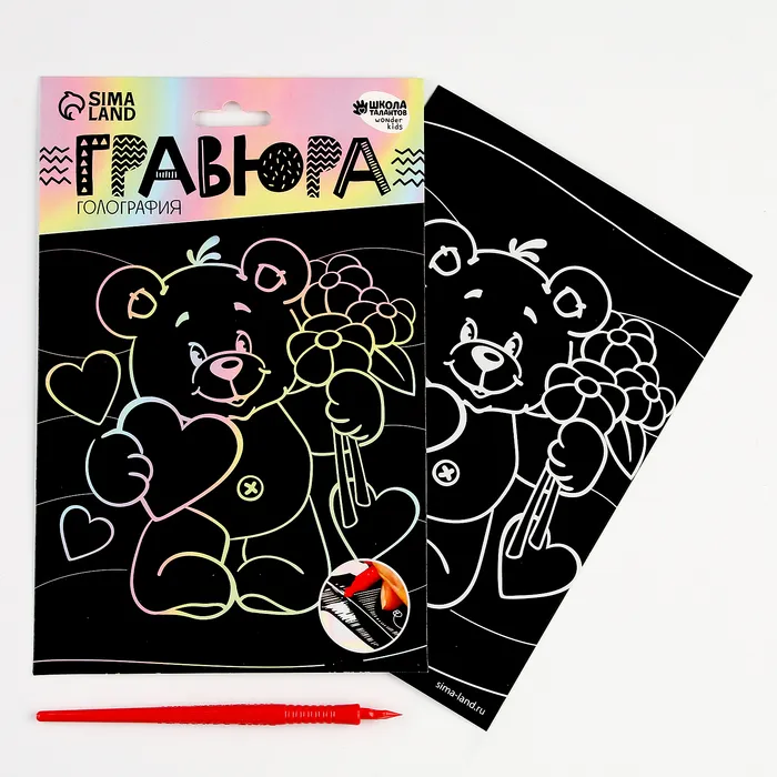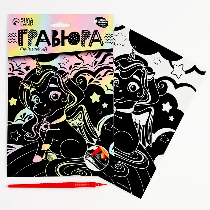 Чтобы создать красивую гравюру, достаточно процарапать намеченные контуры рисунка специальным инструментом — штихелем. Дети будут с удовольствием соскребать верхний слой картины по контурам рисунка, под которым находится цветное изображение!