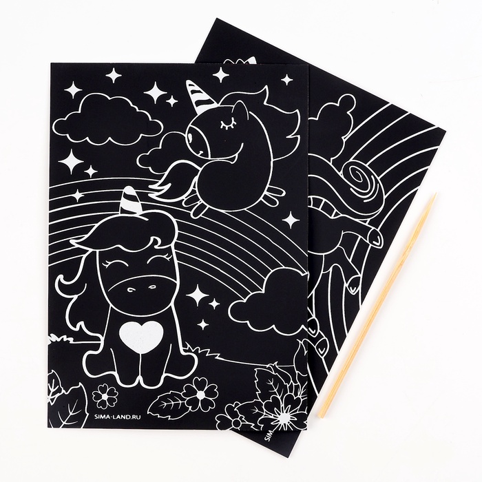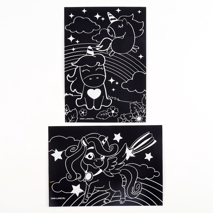 Гравюра детская «Волшебные единороги», 2 шт., 10х15 см