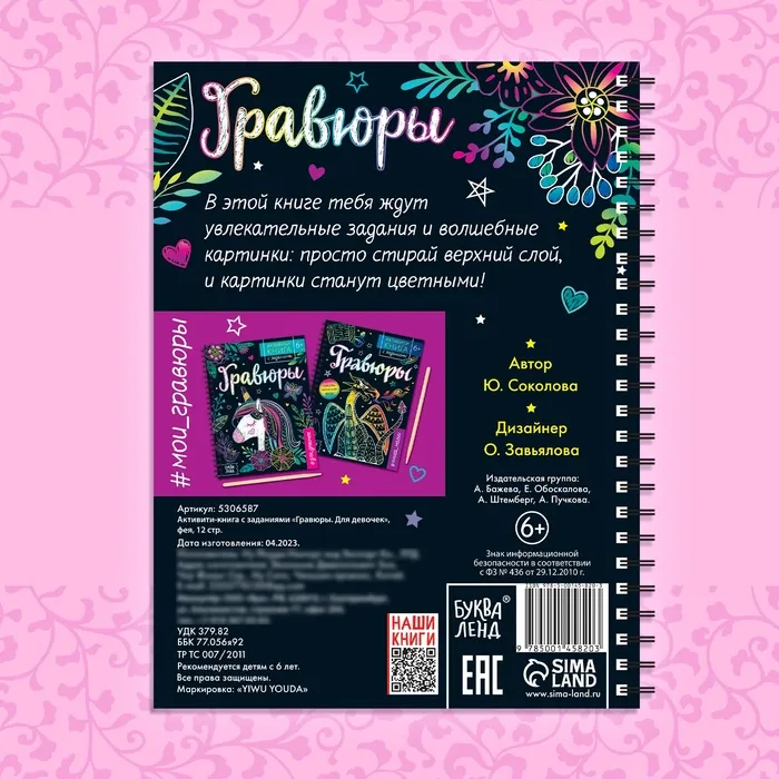 Активити-книга с гравюрами подойдёт в качестве презента, чтобы порадовать ребёнка или поощрить за успехи. Творчество подарит вашей девочке радость, станет любимым хобби, поможет отвлечься от гаджетов и провести время с пользой.