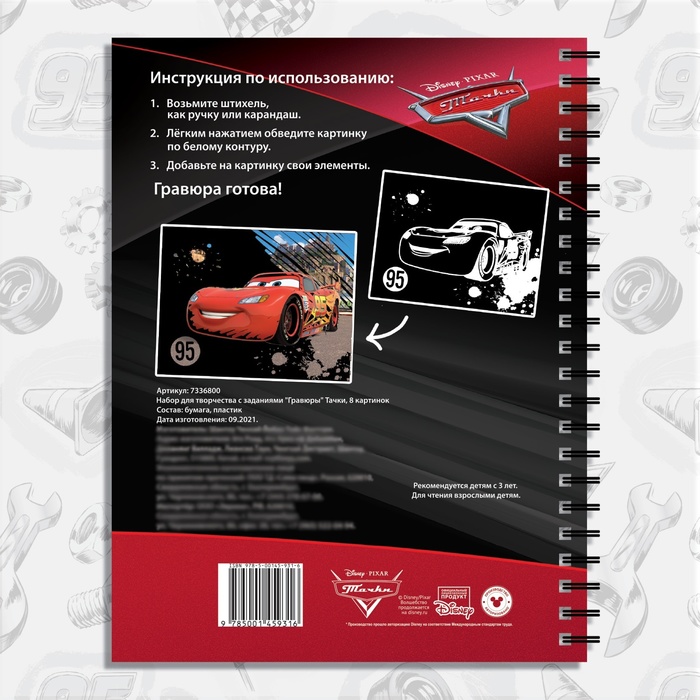 Гравюра для мальчиков «Тачки», набор для творчества с заданиями, 8 гравюр, Дисней — Характеристики