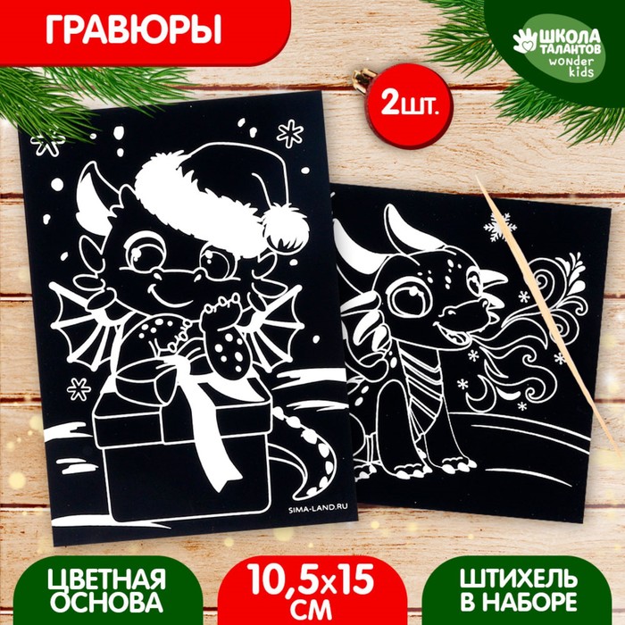 Гравюра «Дракончики-друзья», с цветным эффектом, 2 шт