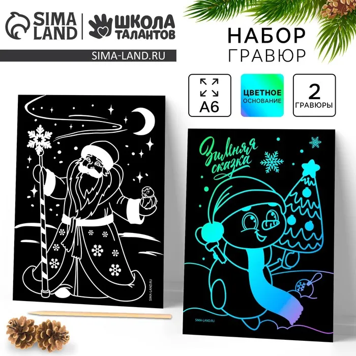 Гравюра представляет собой многослойное панно, покрытое чёрной краской, на которое нанесён контур рисунка. С помощью особого скребка (штихеля), который входит в набор, путём процарапывания и создается гравюра.
