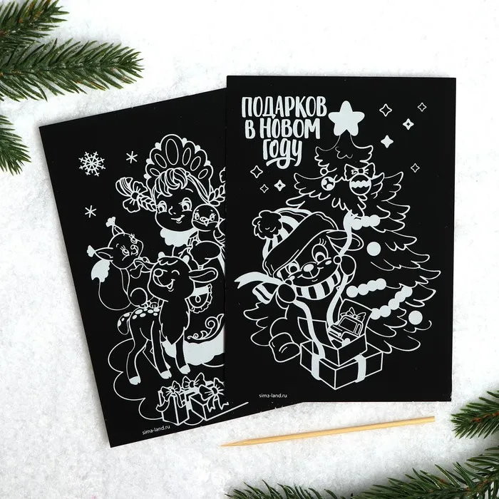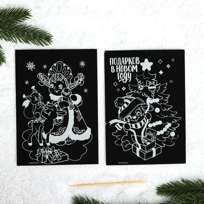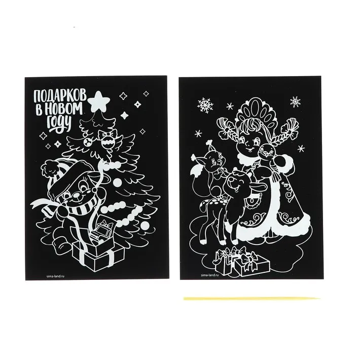 Чтобы создать новогоднюю картинку, достаточно процарапать намеченные контуры рисунка специальным инструментом — штихелем. И взрослый и ребёнок с удовольствием будет счищать верхний слой гравюры, под которым находится цветная основа, ведь это так увлекательно!