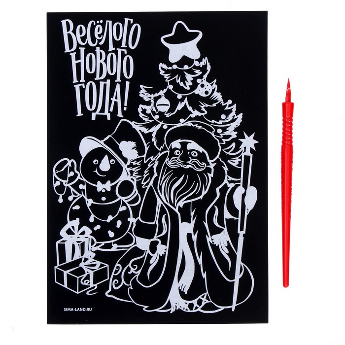 Гравюра на новый год «Весёлый праздник!» с цветной основой