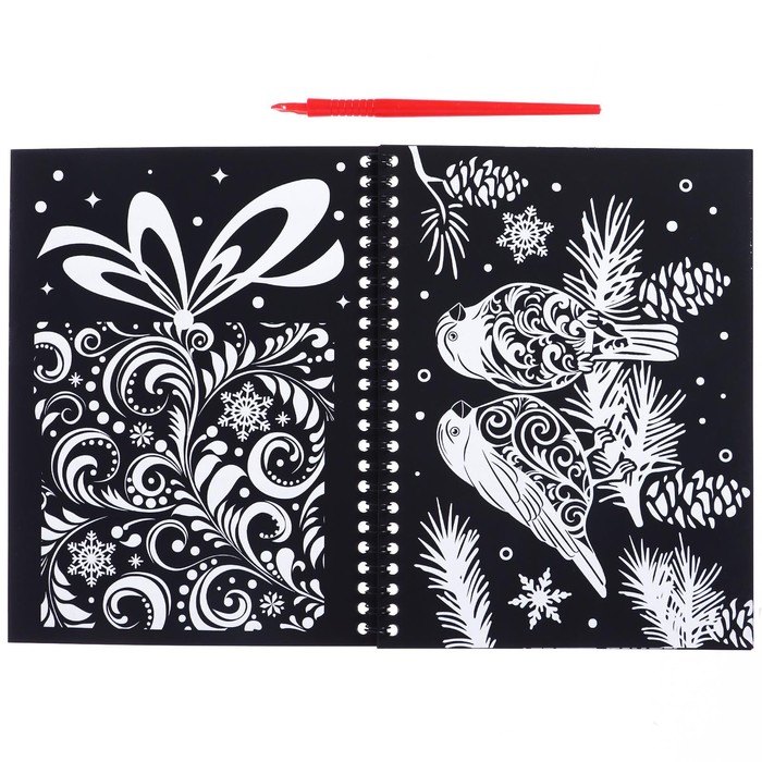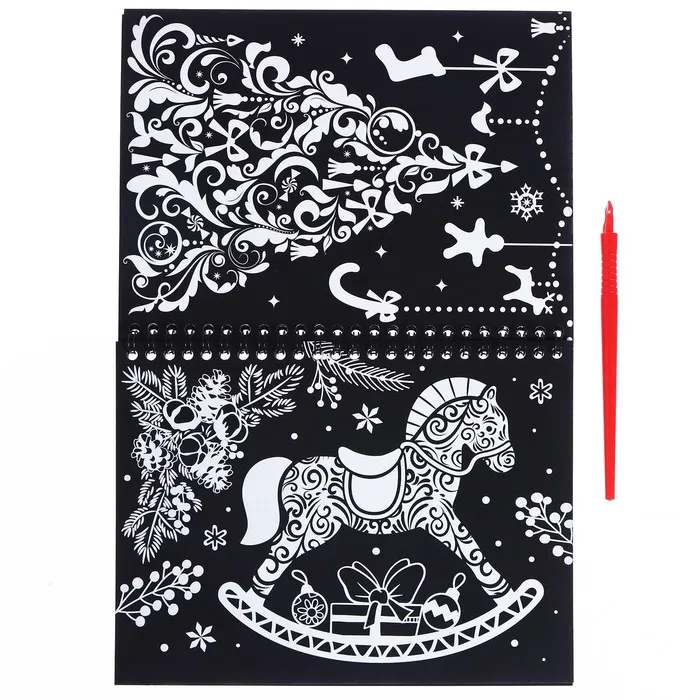 С книгой малыш почувствует себя настоящим волшебником. Он будет обводить контуры картинок пластиковым штихелем и наблюдать за новогодним чудом!