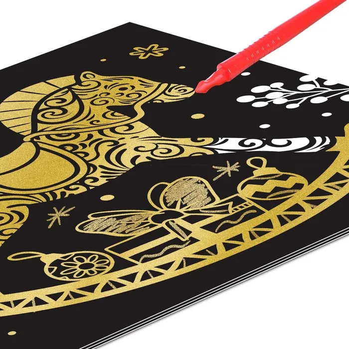 Гравюра новогодняя «Книга для творчества», 10 гравюр, металлический эффект золота — Характеристики