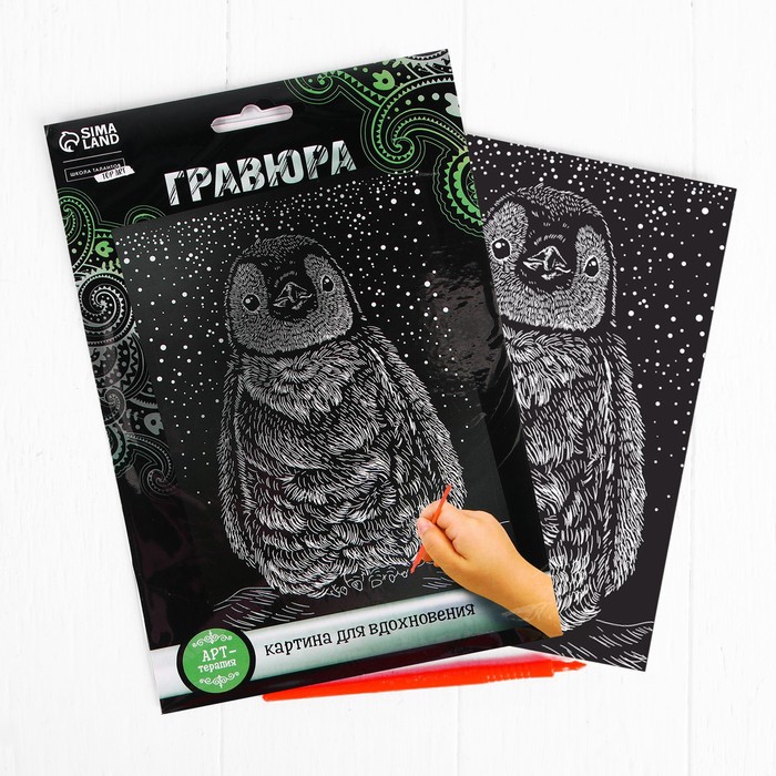 Гравюра «Пингвин» с металлическим эффектом «серебро» А5 — Характеристики