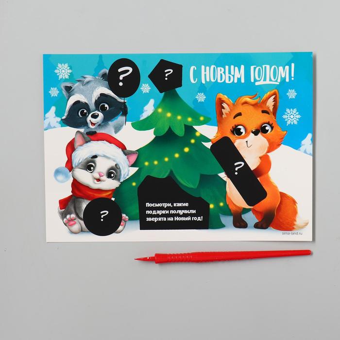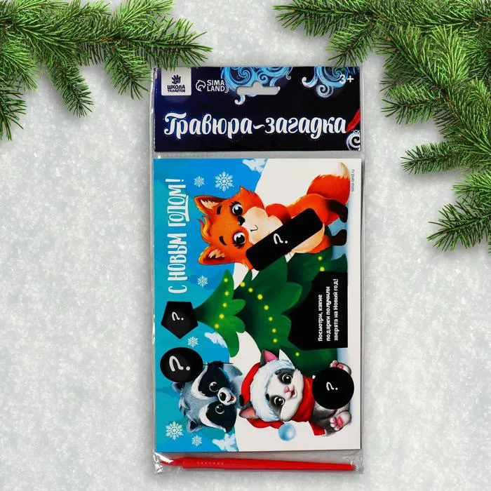 Чтобы разгадать загадку, достаточно процарапать намеченные контуры рисунка специальным инструментом — штихелем. И взрослый и ребёнок с удовольствием будет счищать верхний слой гравюры, под которым находится ответ!