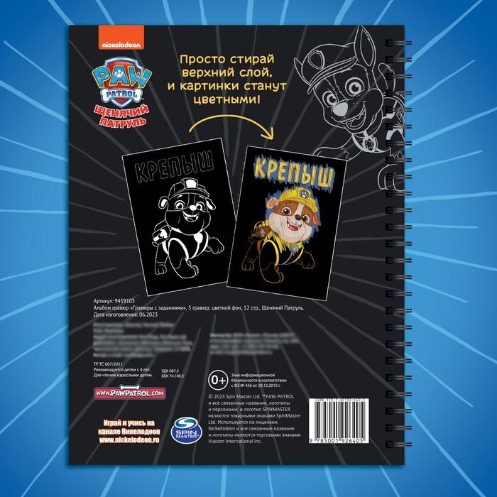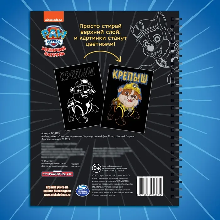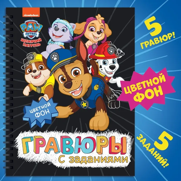 Гравюры детские «Альбом с заданиями», 5 гравюр, цветной фон,12 стр., Щенячий Патруль — Характеристики