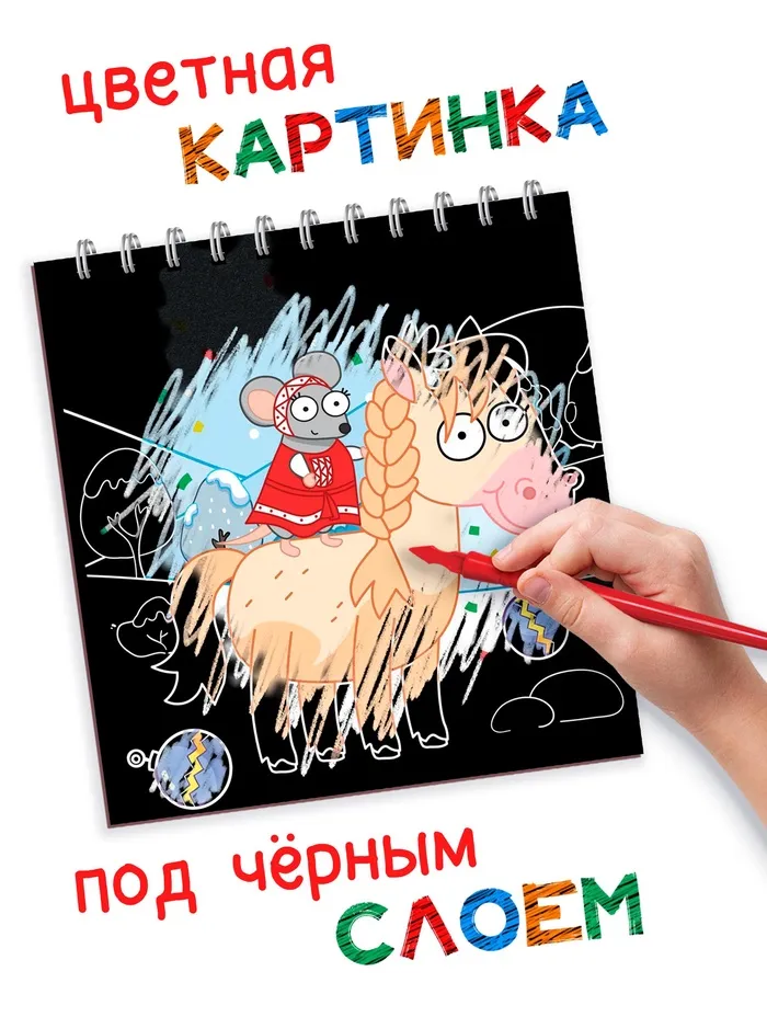 Набор из 10 ярких гравюр на новогоднюю тематику станет отличным подарком для юных художников.