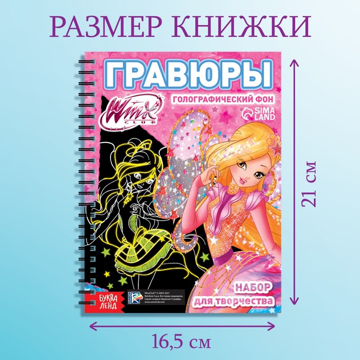 - 5 гравюр с крупными рисунками любимых фей Winx на голографическом фоне.